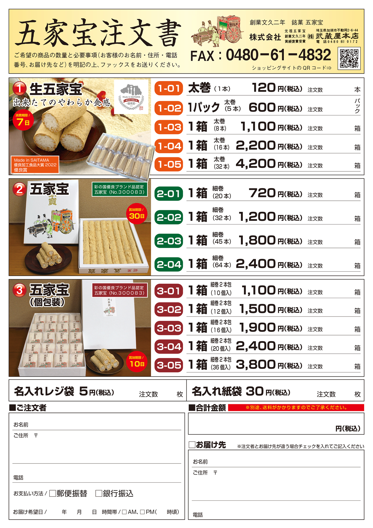 当サイトでは商品のご注文方法を基本的に、①電話・②FAXでのご注文を受け付けております。