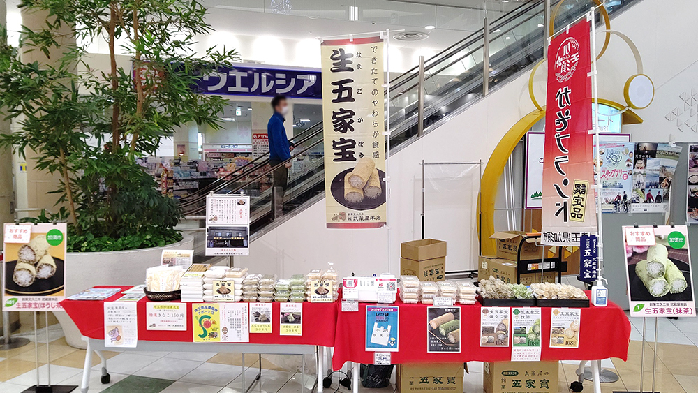 生五家宝は、本店、ヤオコー加須店、JA南彩 菖蒲グリーンセンター(きなこのみ)販売しています。
