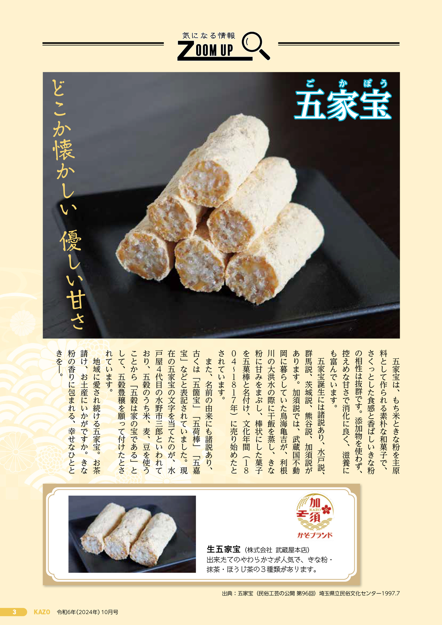 令和6年10月号の広報かぞに弊社の五家宝が掲載されました