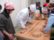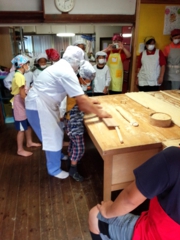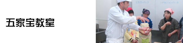 当店では小・中学校、各種団体などへ五家宝の作り方を教える教室を行っています。